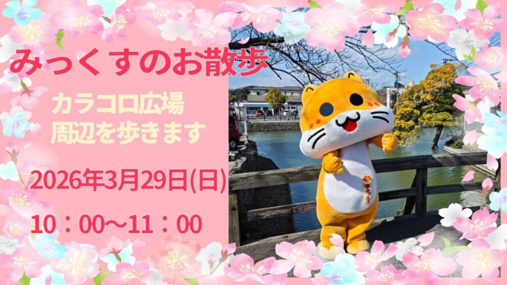 HOME > 松江情報 > 松江情報 3月のお散歩🌸 2026年2月22日 2026年3月29日(日) 10:00~11:00 カラコロ広場周辺を歩きます❣ Post Share Hatena LINE note URLコピー -松江情報